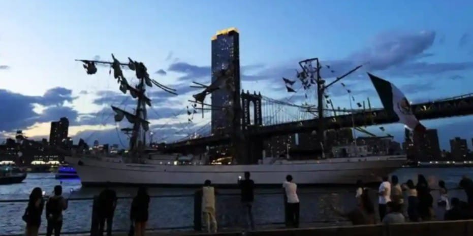 El buque se encuentra en el área este de Manhattan, donde aún permanecen 94 marinos mexicanos.