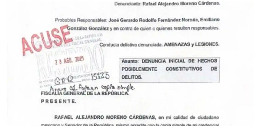 El presidente nacional del Partido Revolucionario Institucional (PRI), Alejandro Moreno Cárdenas, presentó una denuncia penal ante la Fiscalía General de la República (FGR) en contra de Gerardo Fernández Noroña, actual presidente de la Mesa Directiva del Senado.